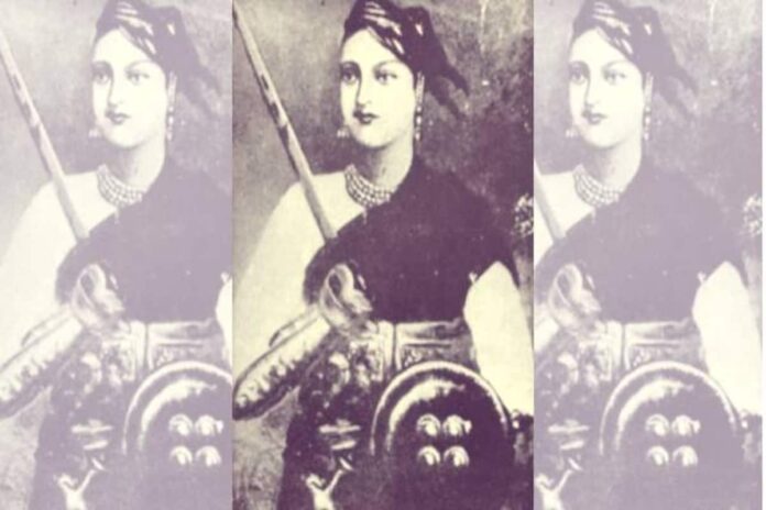 अंग्रेजों ने जब जबरन अपना झंडा यूनियन जैक राजा श्रीमंत बाजीराव पेशवा के ध्वज को उतार कर अपना प्रभुत्व प्रदर्शन करने तथा रियासतों के बीच भय पैदा करने के उद्देश्य से फहराया था। इस अन्याय के विरुद्ध किसी ने कोई आवाज उठाने तक की हिम्मत नहीं की थी। परंतु साहसिक मणिकर्णिका ने आधी रात को ही अंग्रेजों के उस फहरते यूनियन जैक को उतार कर उस पर बिठुर राज के केसरिया झंडे को लगा दिया था। दूसरे दिन जब यह अंग्रेजों ने देखा तो देखते ही वे बौखला उठे और पता लगाने के लिये अपने सैनिकों को कहा कि आखिर यह काम किसने किया है ? उसे पता लगाओ और पकड़ कर मेरे सामने लाओ, उसे मृत्यु के घाट उतार दिया जायेगा। किंतु सच्चाई की बात तो किसी को पता थी नहीं। अतः पता लगाने के लिये लोगों पर जुल्म ढाना अंग्रेजों ने शुरू कर दिया। निर्दोष लोगों को बडे़, बुढे,महिला, युवक,युवतियाँ सबों को कोडो़ं से पीटना आरंभ कर दिया, अन्य यातनाएं देने लगे। फिर भी कुछ पता उन्हें नहीं चला। परंतु जब मणिकर्णिका सखियों के साथ खेल रही थी तब उस वक्त जब उसकी सखियों ने पूछा कि तुम पीठ में पीछे क्या छुपा रखी हो? तब मनु ने उस युनियन जैक को सबों के सामने दिखाया और कहा चलो अब हम इसे पतंग बनाते हैं।